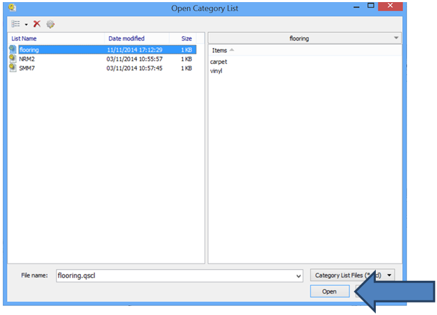 To import this list into QuickScale, click File, Open Category and click on the list name. Then click Open